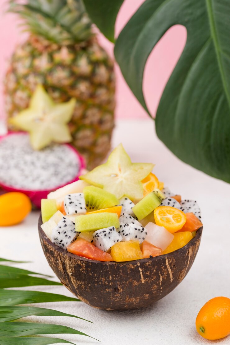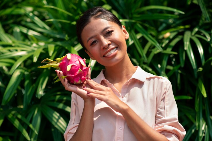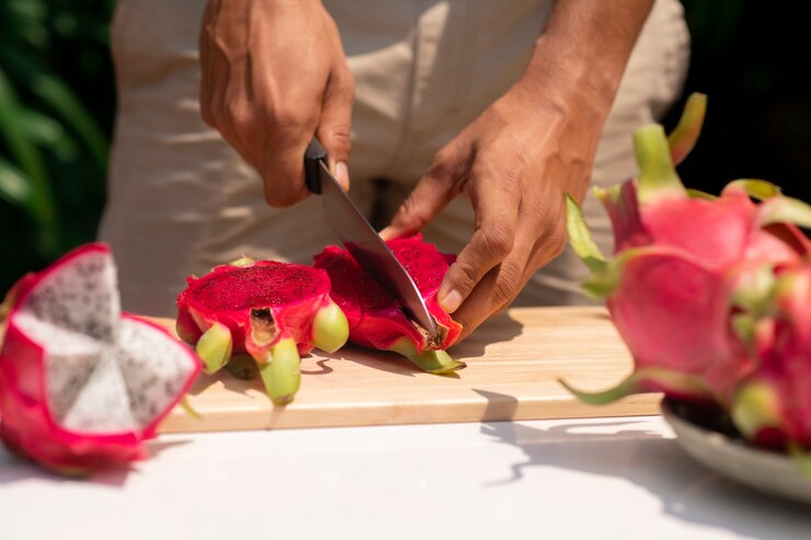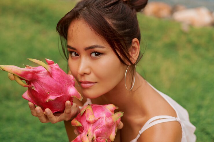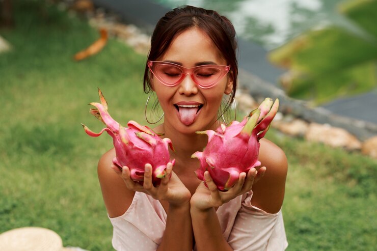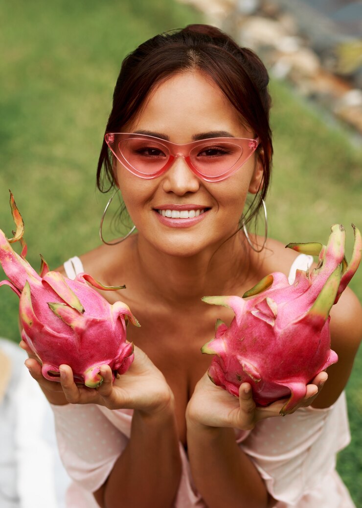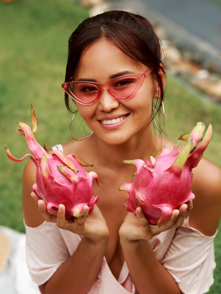 Этот фрукт обладает весьма необычным и запоминающимся внешним видом драгон-фрут, или питахайя. Мякоть обычно белая, хотя встречается и красная, но окончательно определить цвет можно только после разрезания. Вкус плода никак не зависит от его окраски. По текстуре драконий фрукт напоминает киви, однако не обладает кислинкой, а отличается легкой сладостью. Его внутреннее содержимое состоит из однородной мякоти с мелкими чёрными косточками. Очистить его довольно просто: нужно лишь отогнуть кожуру – и фрукт готов к употреблению! Его можно нарезать на дольки или разрезать пополам и извлекать мякоть ложкой.