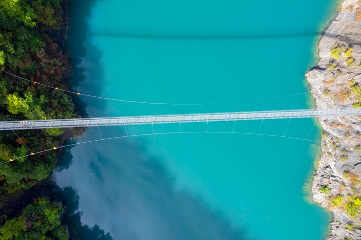 С этой точки открывается вид на Небесный мост, который с высоты кажется небольшим. Однако именно с этого ракурса можно детально изучить его структуру и форму.