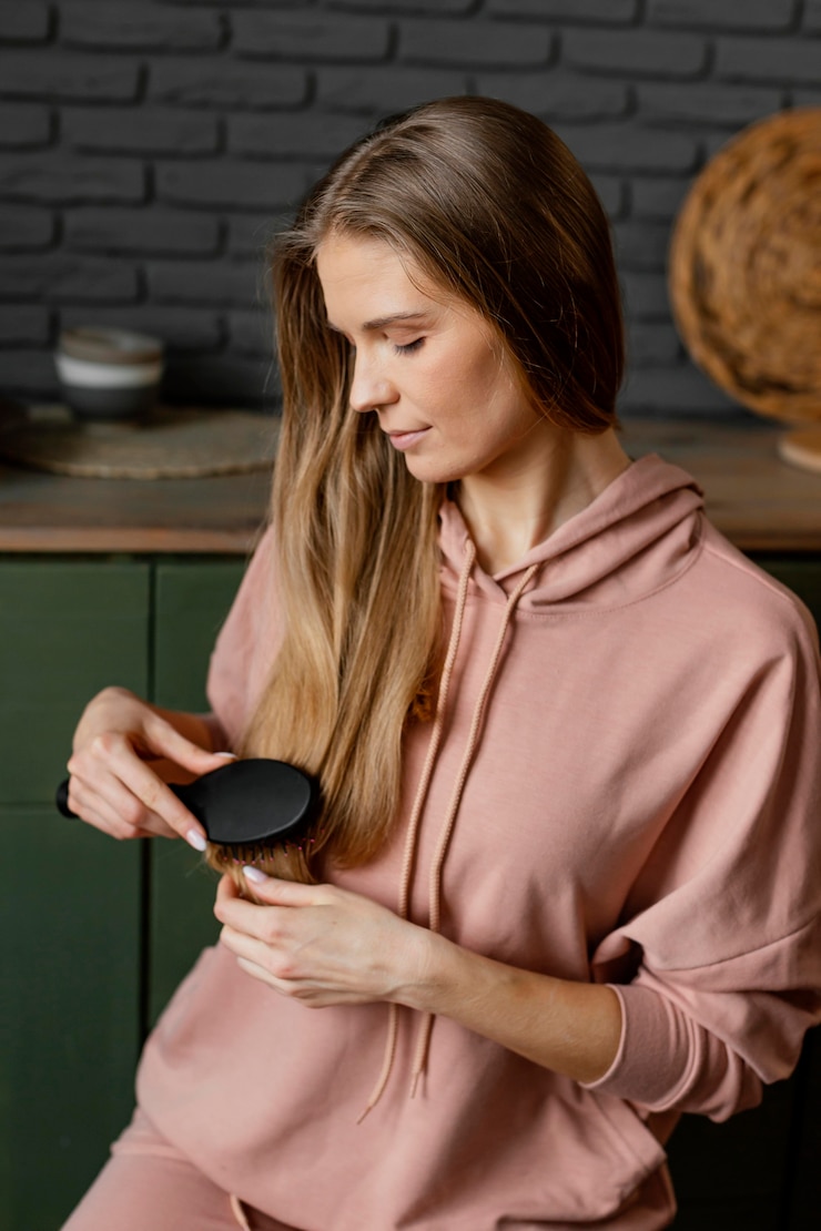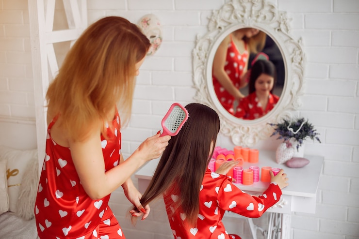 - Приведите волосы в порядок, проведя пробор точно по центру головы.