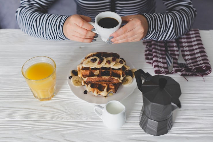 Этот вид вафель больше соответствует завтрака, но его также можно предложить в качестве полдника. Получившееся блюдо отличается насыщенностью и превосходным вкусом, к нему хорошо подойдут вафли с медом.