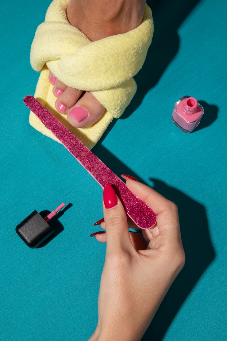 - Остатки клейкого слоя удаляются с помощью пилочки, после чего можно приступать к нанесению дизайна.