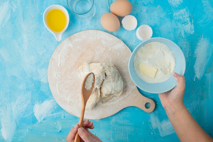 - Из полученного теста, руками лепят лепешки, которые в толщину будут около полутора сантиметров.