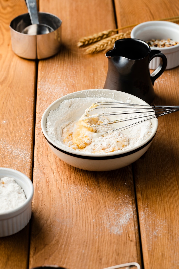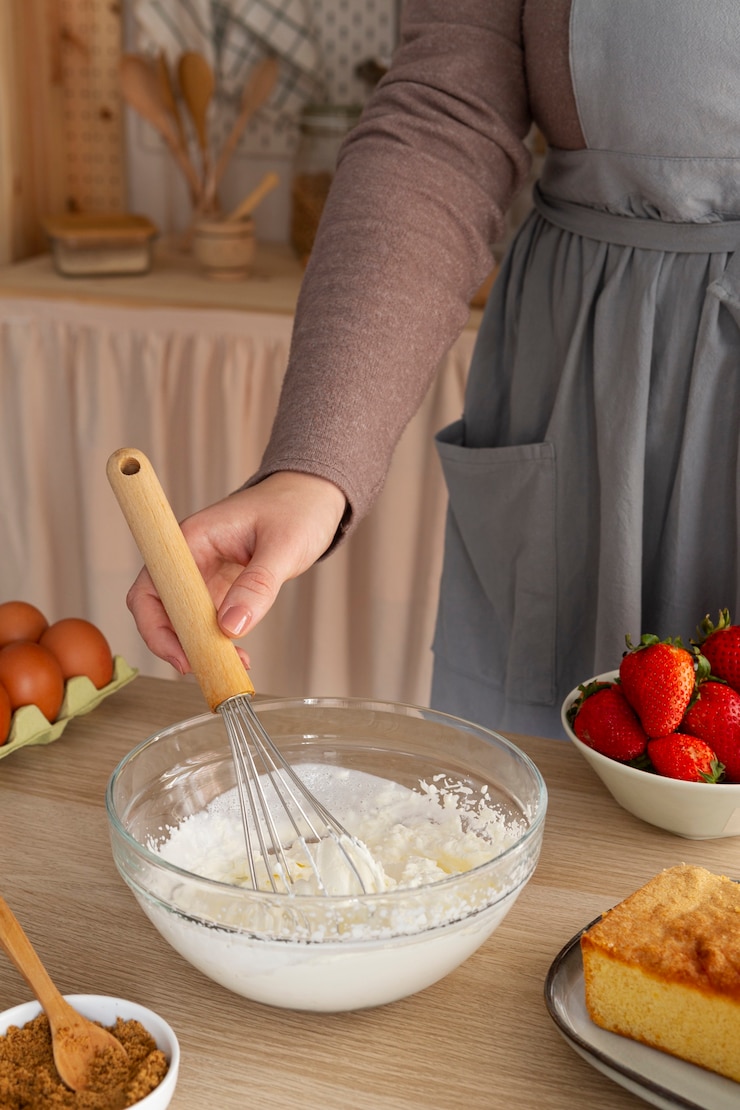 - Тесто вымешивают ложкой, консистенция получается не слишком плотной.
