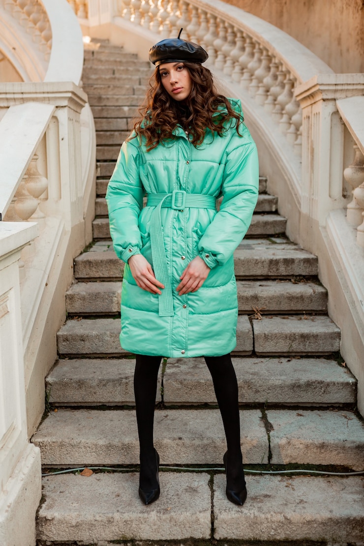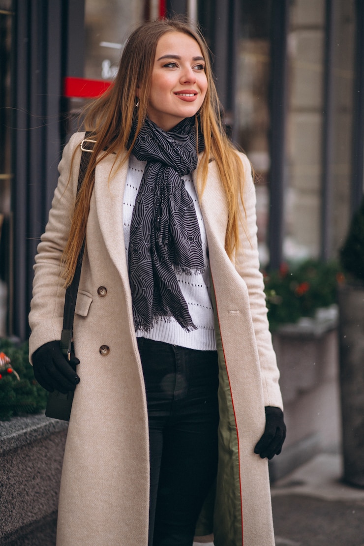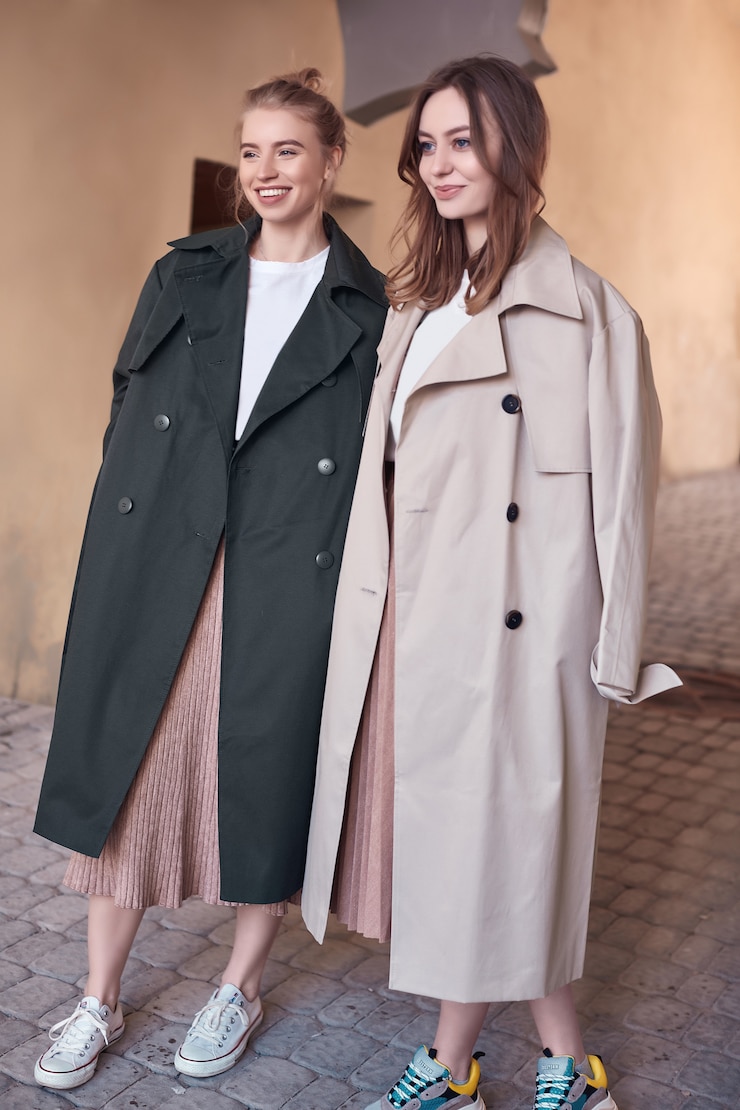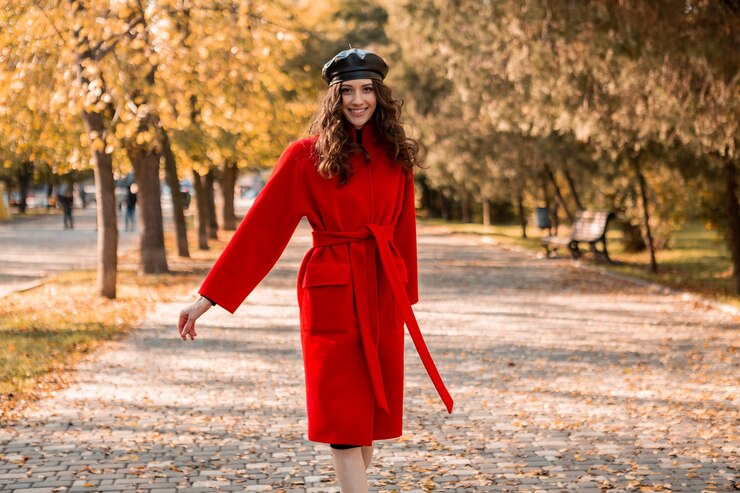 - Классические пальто с приталенным силуэтом и широкими поясами, завязывающимися сзади.