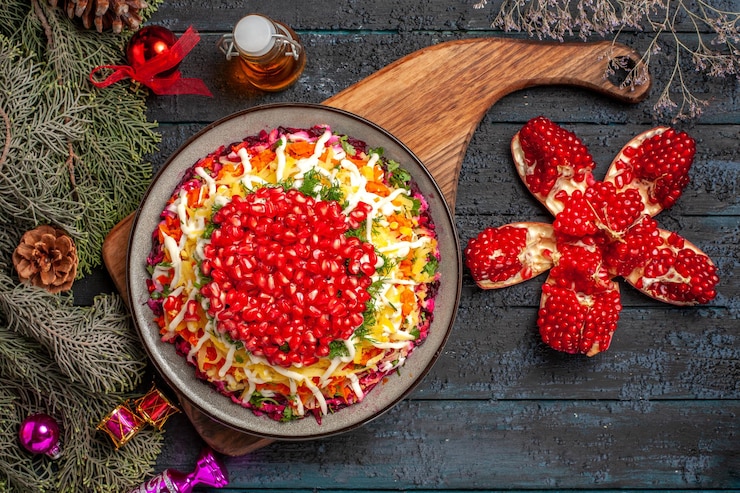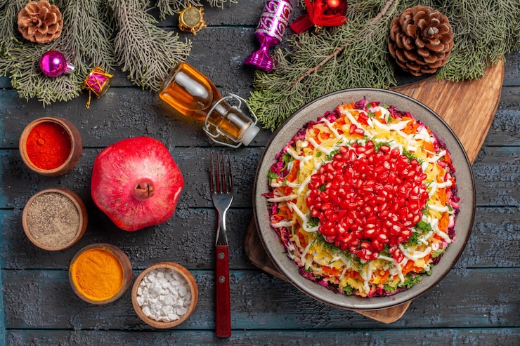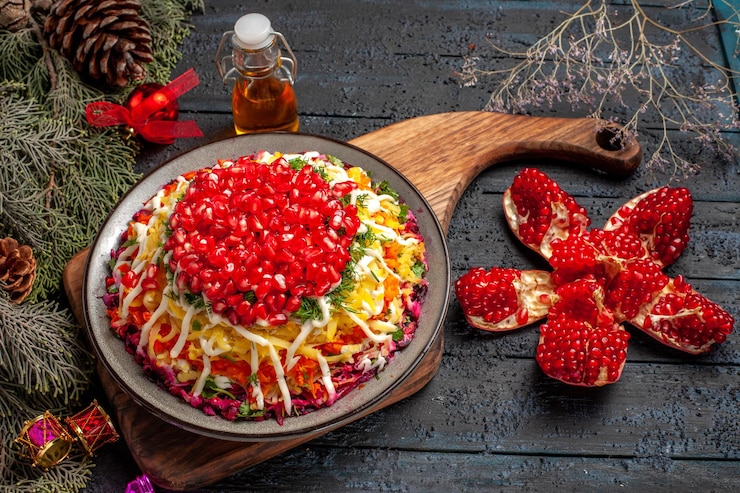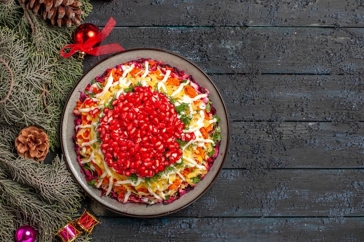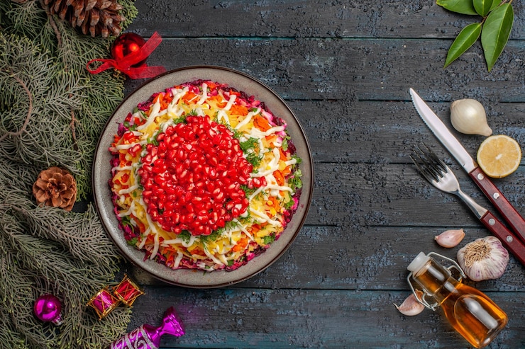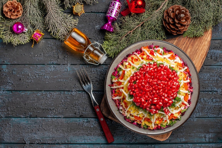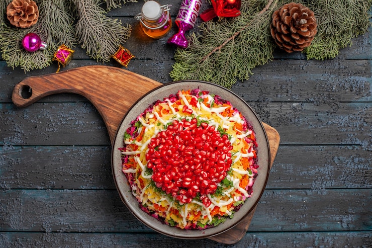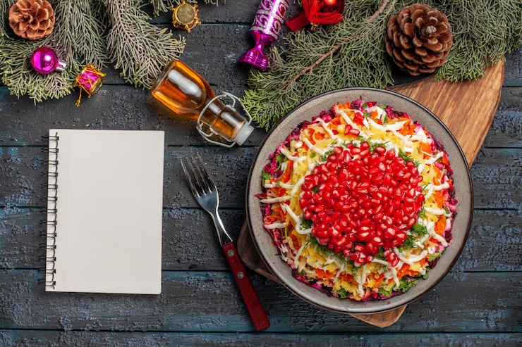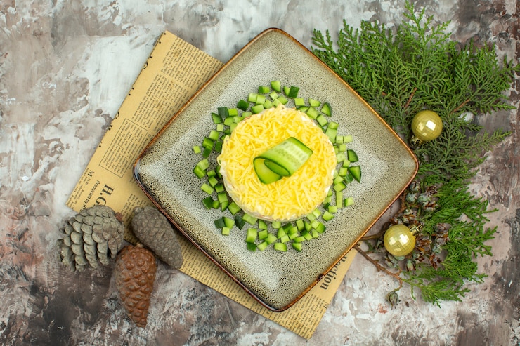 Благодаря своему внешнему виду салат идеально дополнит новогодний стол, создавая ощущение легкости, воздушности и вызывая аппетит.