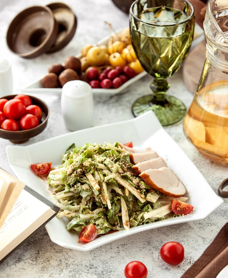 Подобные салаты всегда производят впечатление утонченности и радуют глаз, становясь привлекательным и желанным дополнением к праздничному столу. При выборе нескольких вариантов легких салатов важно соблюдать равновесие: сочетать полностью овощные, витаминные и освежающие салаты с такими же легкими вариантами, но дополненными ингредиентами, содержащими белок.