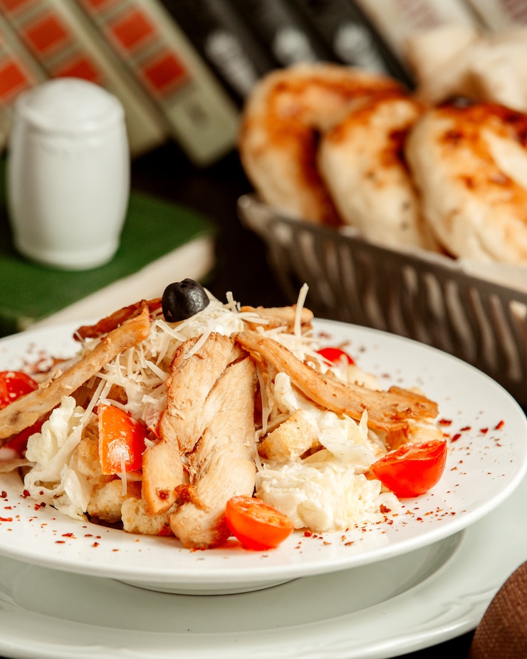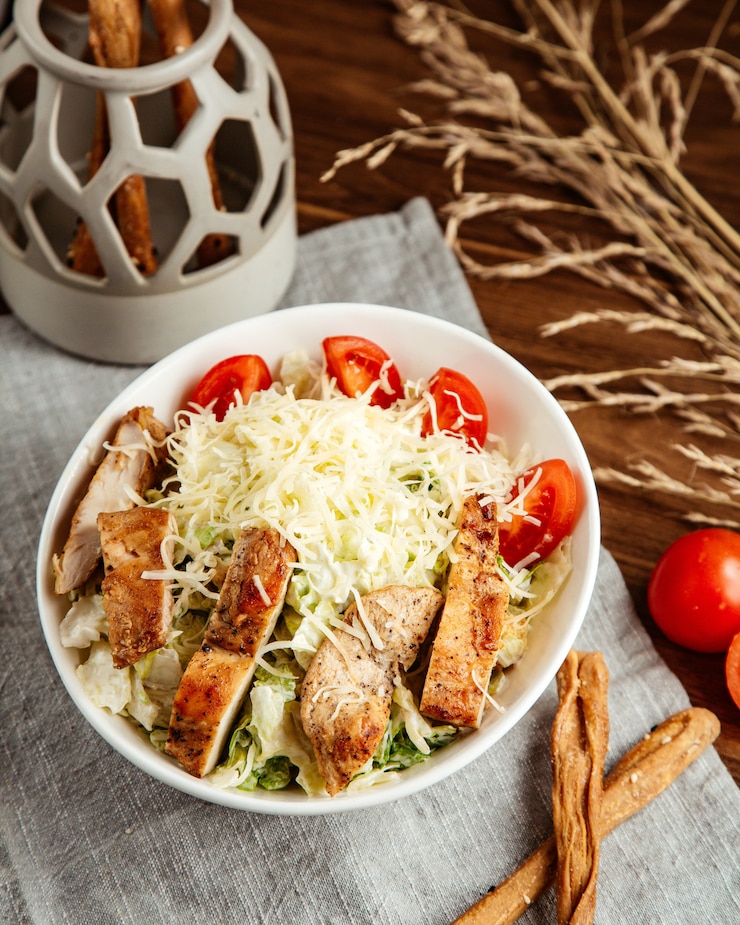 Чтобы приготовить салат «Цезарь» с курицей по классическому рецепту, вам понадобятся следующие ингредиенты и этапы. Сначала необходимо подготовить куриное филе: его следует обжарить или запечь до готовности, а затем нарезать тонкими полосками. Далее, листья салата ромэн тщательно промываются и высушиваются. Классический соус для «Цезаря» готовится из яичных желтков, оливкового масла, лимонного сока, чеснока, дижонской горчицы, пармезана и чёрного перца. Сухарики для салата можно приготовить самостоятельно, подсушив кубики хлеба с оливковым маслом и чесноком, или использовать готовые. Для подачи салатные листья смешиваются с курицей, сухариками и обильно поливаются соусом, сверху посыпается тёртым пармезаном