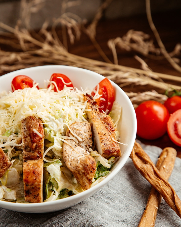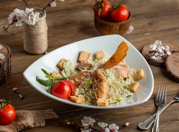 Салат с курицей получил свое название в честь известного ресторатора Цезаря Кардини. Однажды, когда к нему неожиданно зашли гости, он приготовил его из продуктов, которые были под рукой. Со временем его рецепт стал передаваться среди кулинаров. Благодаря Кардини каждый может приготовить классический вариант этого блюда дома, следуя рецептам с фотографиями. Однако с годами повара начали вносить в него изменения, добавляя анчоусы, капусту и другие ингредиенты, поэтому вскоре появятся новые вариации.
