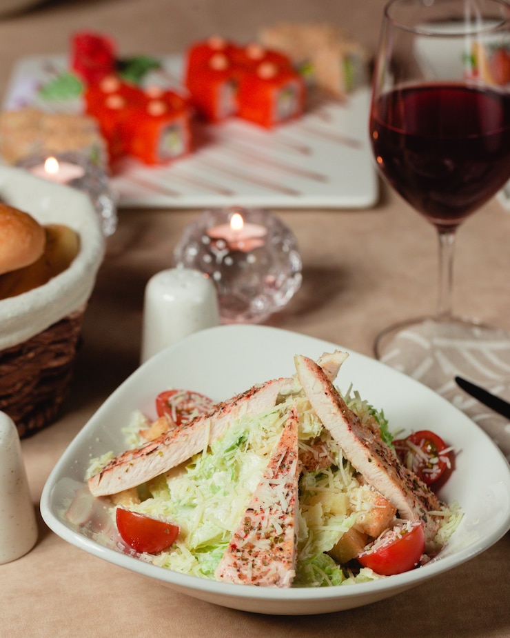 Для создания утонченной атмосферы в доме достаточно открыть бутылку вина и приготовить горячее мясное блюдо. В качестве дополнения можно предложить салат «Цезарь» с курицей, приготовленный по ресторанному рецепту в домашних условиях.
