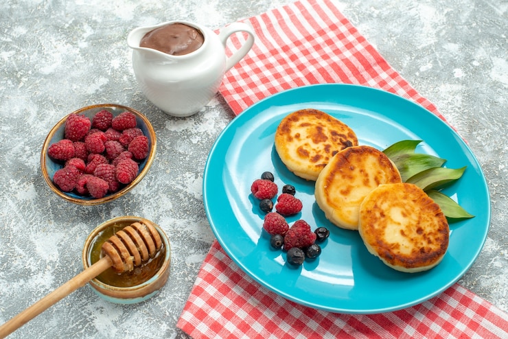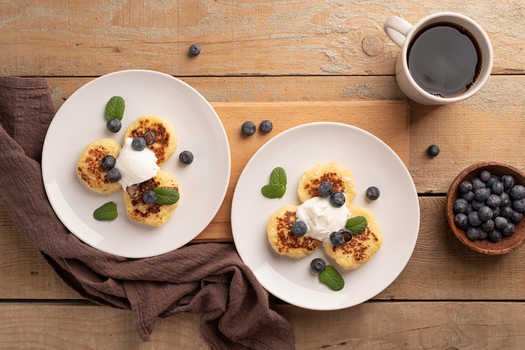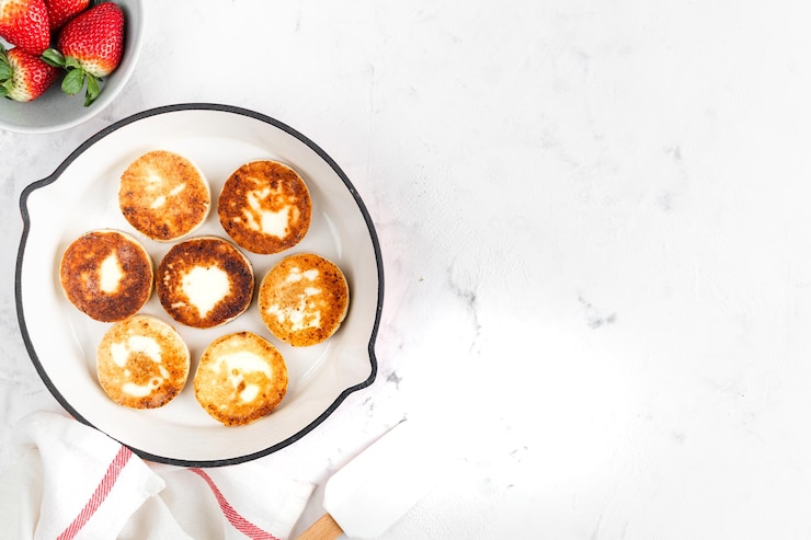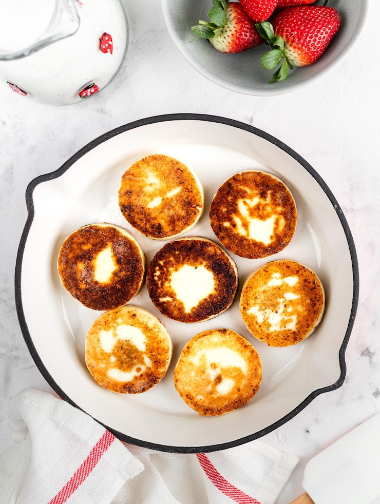 Использование небольшого количества соды сделает сырники очень воздушными. Эти сырники можно подавать к чаю или кофе в качестве альтернативы домашней выпечке.