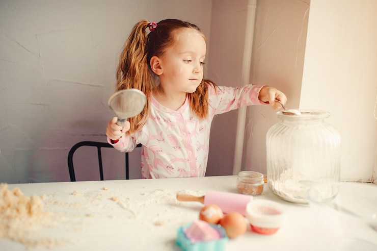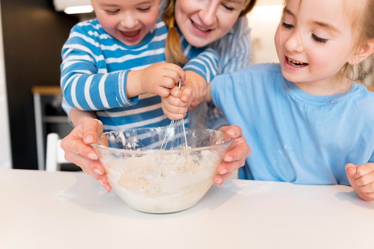 - После того, как творожная масса стала однородной, добавляют муку и снова перемешивают.