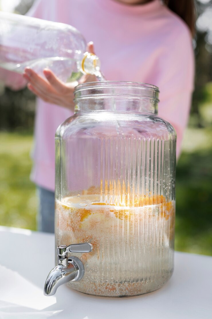- Наливаем холодную воду, оставляя место, чтобы банка не была заполнена доверху. Квас будет пениться, и для этого требуется свободное пространство.