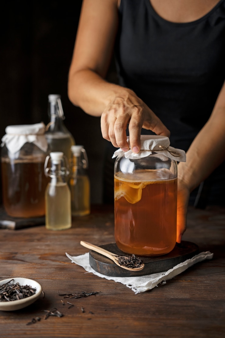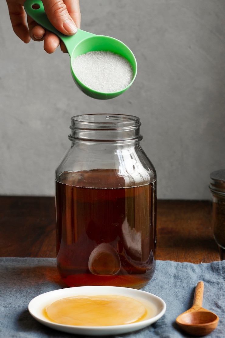 - Используем кипяченую остуженную воду для заваривания, накрываем марлей или перевернутой капроновой крышкой и оставляем для брожения.