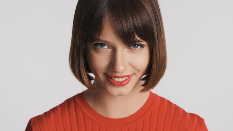 Для обладательниц темных волос, безупречного тона кожи и привлекательной формы лица в 2019 году модные тенденции советуют сделать слегка удлиненное каре с асимметричной челкой. Если раньше брюнеткам предлагали челку-прямую линию, то в этом сезоне допускается отход от классики, и лоб остается частично открытым.