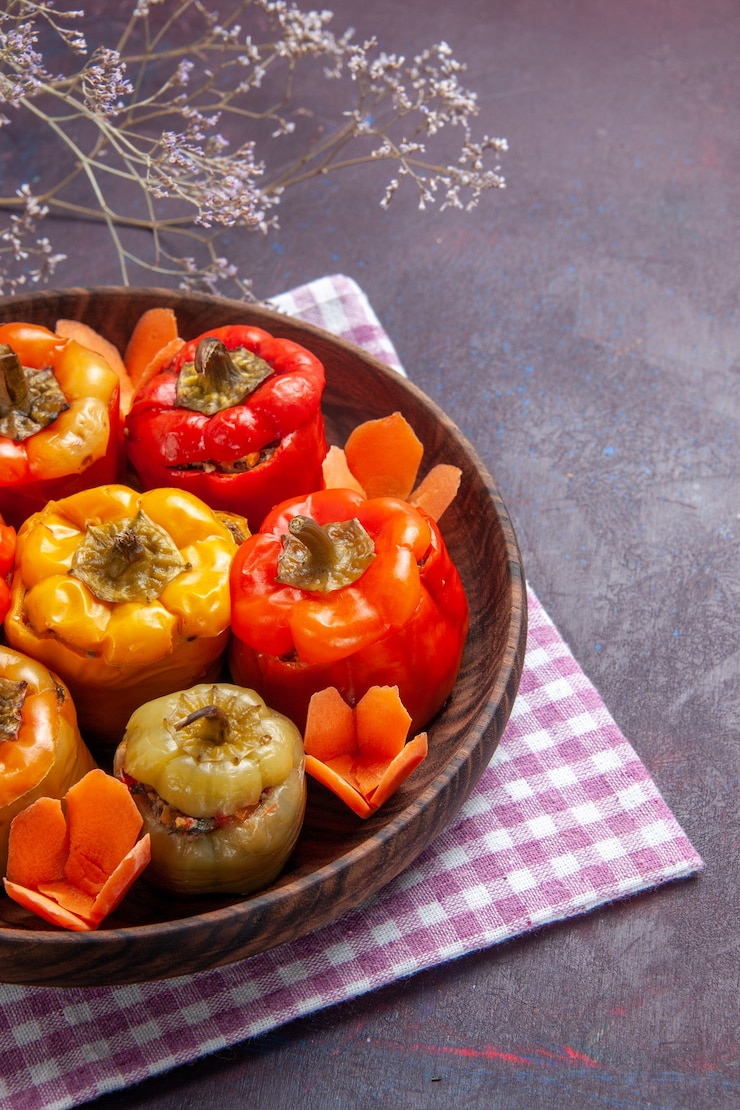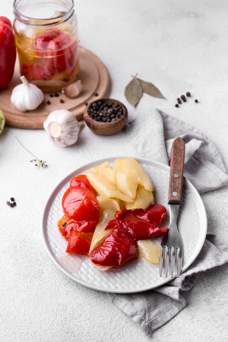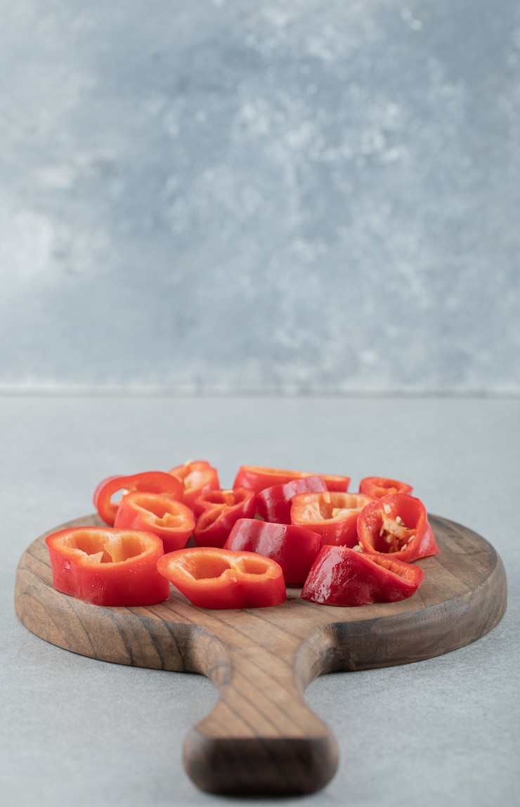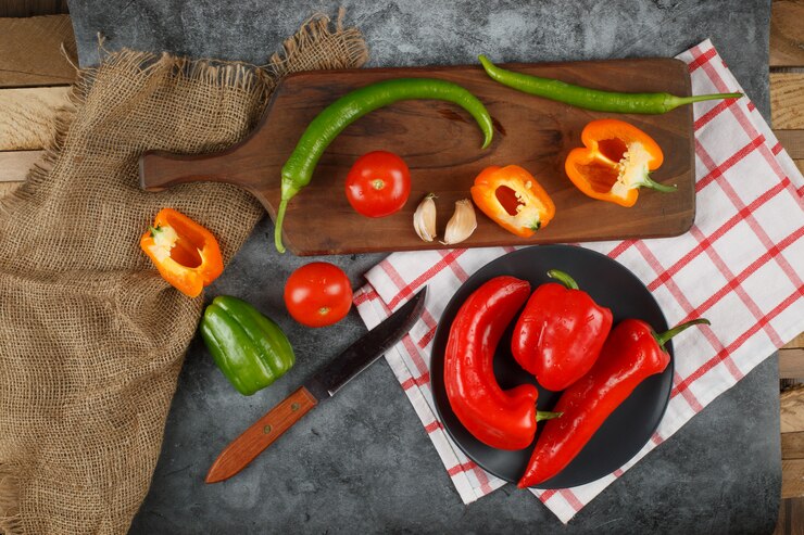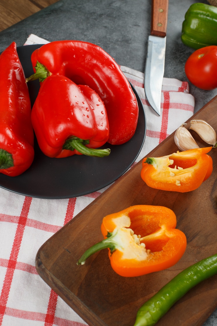 - Перец, как сладкий, так и острый, необходимо очистить от семян. При работе с острым перцем следует соблюдать осторожность, рекомендуется использовать перчатки, чтобы избежать ожогов.