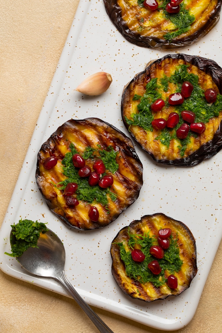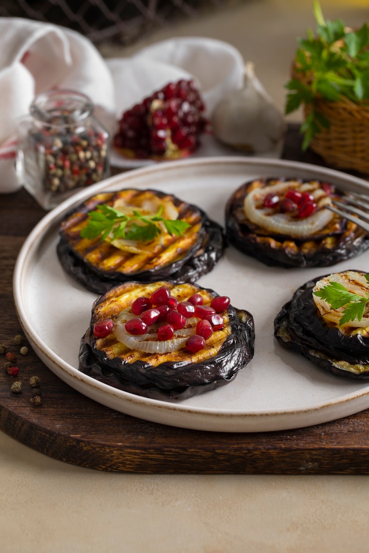- Приготовленные баклажаны посыпают зеленью и подают к столу охлажденными или теплыми.