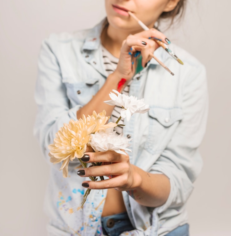 Создание рисунка на коротких ногтях – задача непростая. Но для достижения эффектного маникюра потребуется усердие. Ознакомьтесь с фотографиями: френч с рисунком, украшенный изящными цветочками, выглядит волшебно. Этот дизайн предполагает сочетание нежного, натурального оттенка основы и нарисованных на каждом или нескольких ногтях цветов более ярких или насыщенных тонов.
