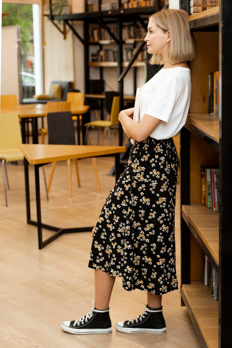 Низкая обувь также приемлема. Если юбка сочетается с футболкой, кроп-топом или рубашкой, то ее можно дополнить кроссовками, кедами или слипонами.