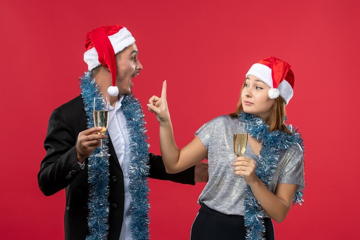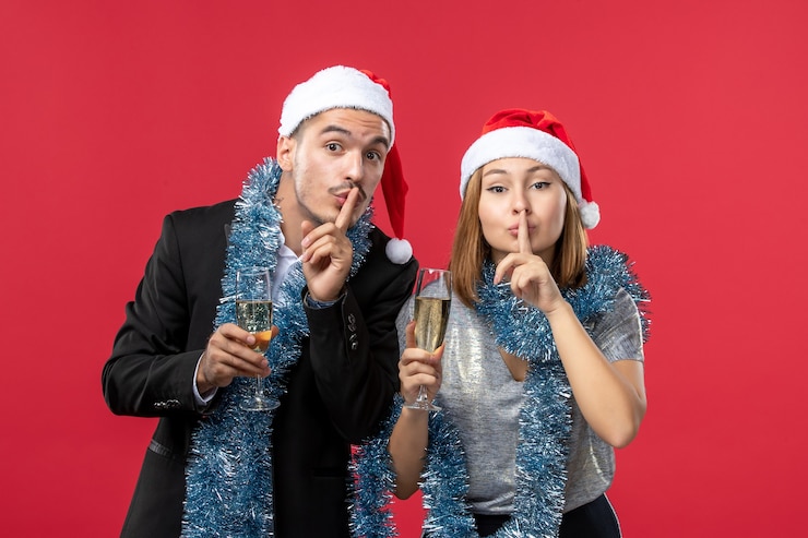 - Недопустимы излишняя открытость, прозрачные материалы, открытая грудь или живот. Открытое плечо или небольшой вырез в области декольте – допустимый вариант для новогодней встречи с коллегами.