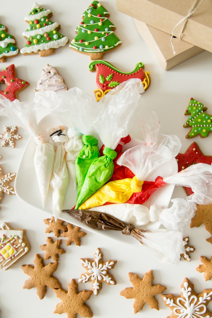 Для декора можно приготовить глазурь, смешав яичный белок с 150 граммами сахарной пудры и тремя каплями лимонного сока. Полученную глазурь перекладывают в кондитерский мешок и используют для украшения имбирной выпечки, пока она не загустела.