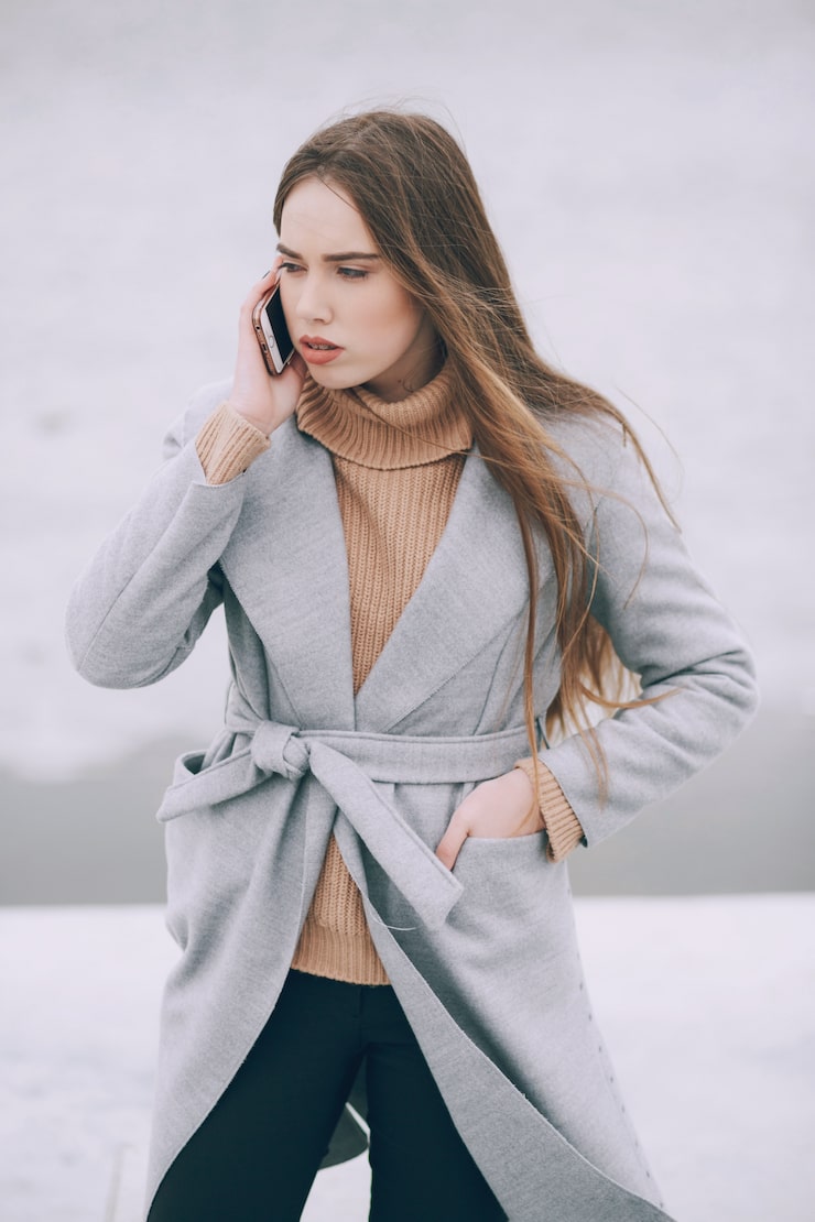 Сама по себе серая верхняя одежда в комбинации с темными однотонными вещами может сделать лук слишком простым и невзрачным. Такая верхняя одежда послужит отличным фоном для остальных деталей. Поэтому следует позаботиться о стильном аксессуаре.