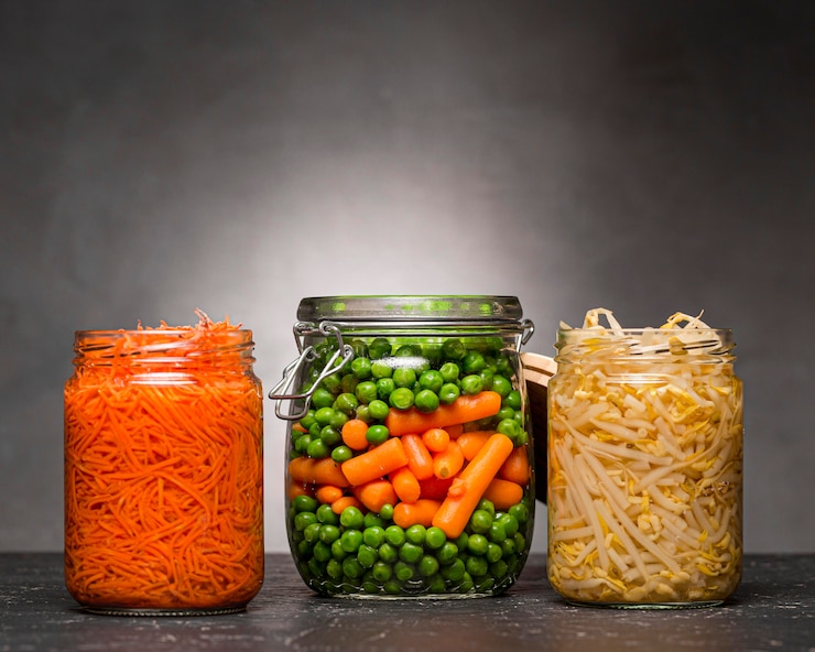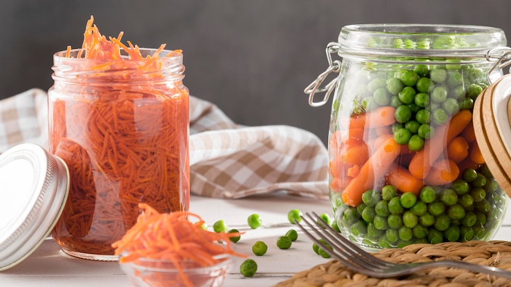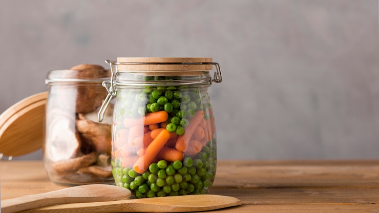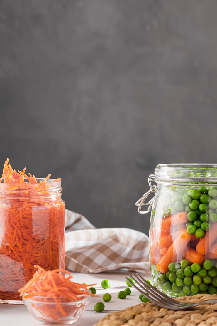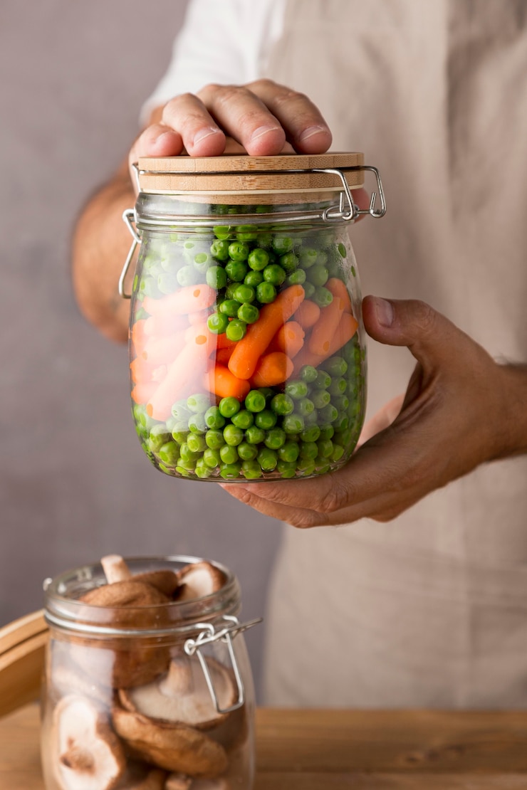 - Овощную смесь помещают в стерильную стеклянную емкость.