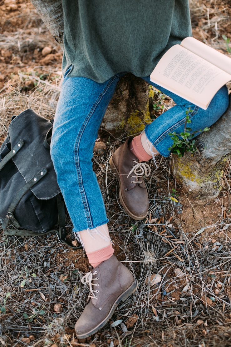 Ботинки – оптимальный выбор для сочетания с джинсами мом осенью. Для создания стильного образа штанины потребуется подкатить, чтобы между краем голенища и верхом ботинок была видна небольшая часть ноги. Заправлять момы в обувь недопустимо. Модные эксперты считают, что подобное сочетание равносильно ношению спортивных штанов с ботильонами.