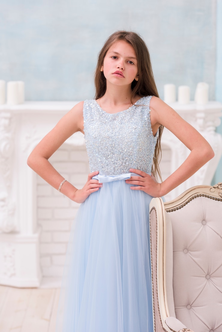 - Модели в пол. Длинные платья помогают создать женственный и изысканный образ, акцентируя внимание на грациозности и нежности фигуры. При выборе такого варианта важно учитывать, насколько комфортно будет танцевать в длинном платье, и удастся ли провести в нем всю ночь, ведь выпускные вечера часто длятся до самого рассвета.