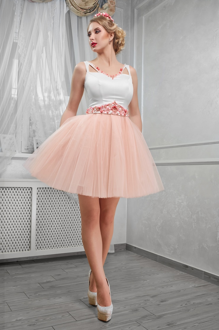 - Короткие. Платья с длиной подола до середины бедра позволят создать игривый, энергичный, кокетливый и неудержимый образ. Особенно актуальными окажутся модели с объемной нижней частью, а также платья, полностью изготовленные из кружева. Важно не перегрузить такой наряд лишними деталями и аксессуарами. Кроме того, стоит учитывать, что мини-платья уместны только для невысоких девушек.