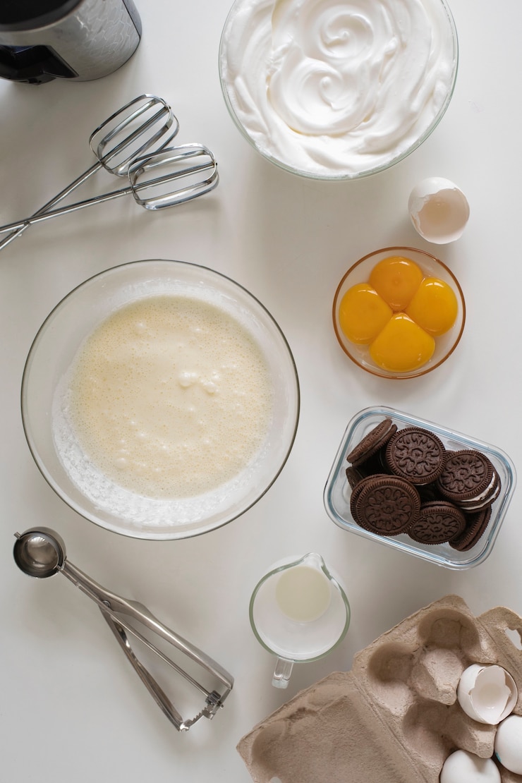 - Для создания глазури в миску добавляют яичные белки, затем всыпают сахар и помещают на водяную баню, после чего взбивают до образования устойчивых пиков. При взбивании необходимо следить за температурой белковой массы, чтобы она не была чрезмерно горячей, иначе белки могут свернуться.