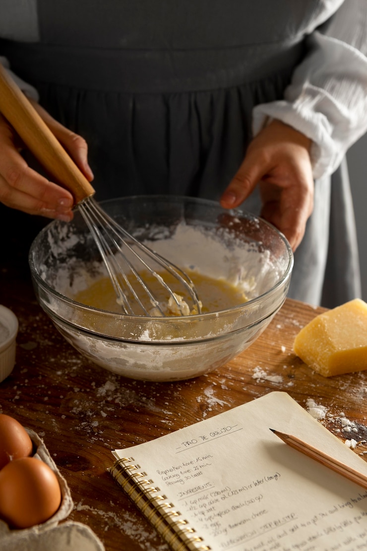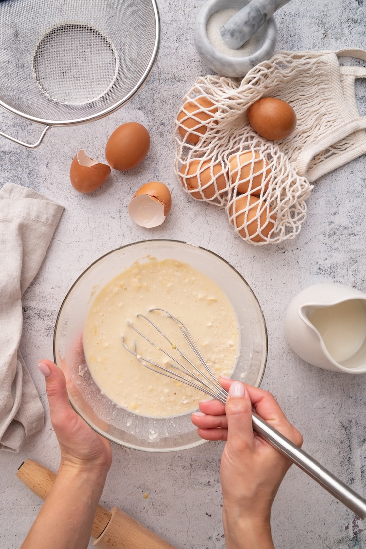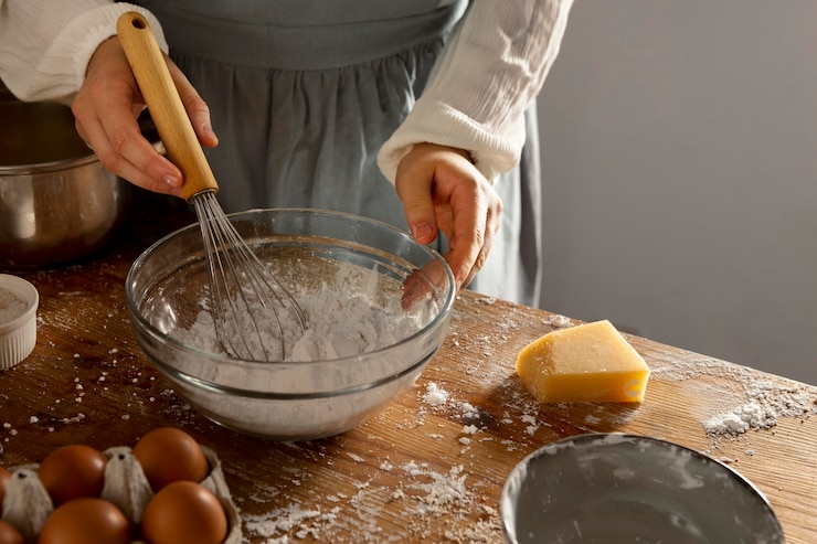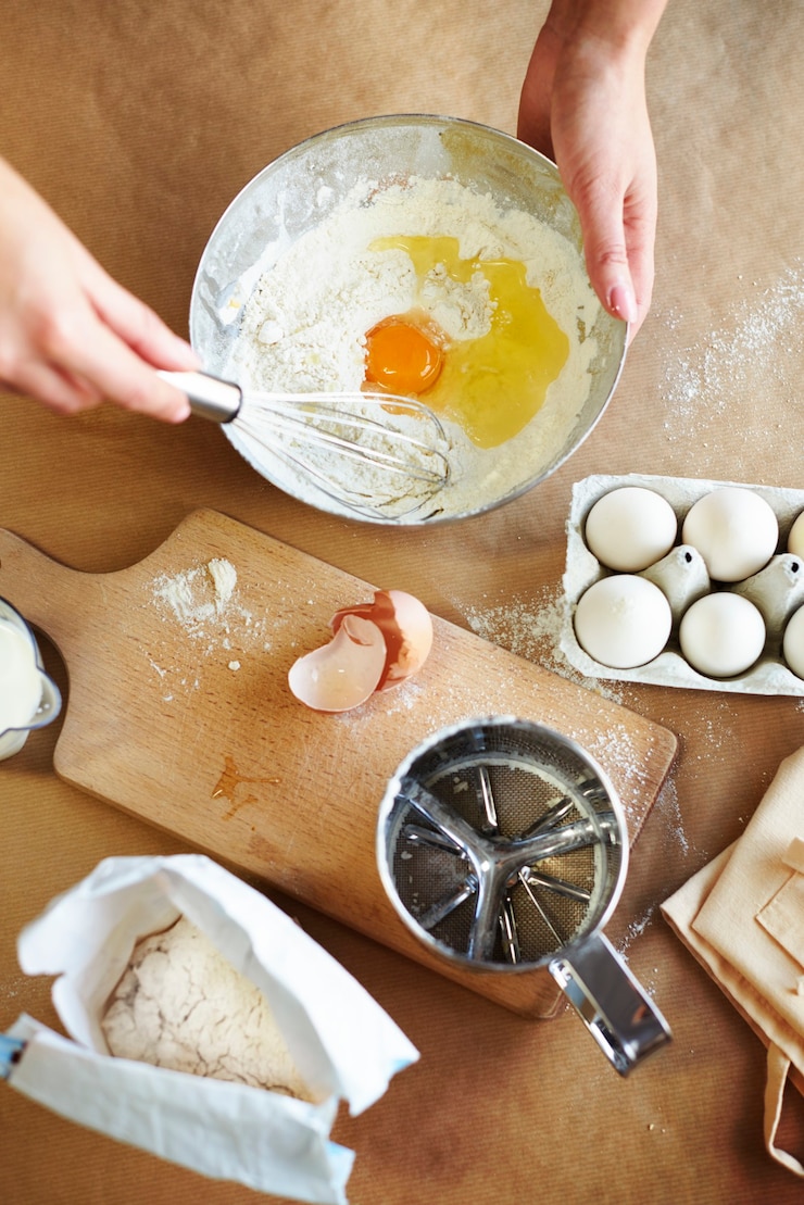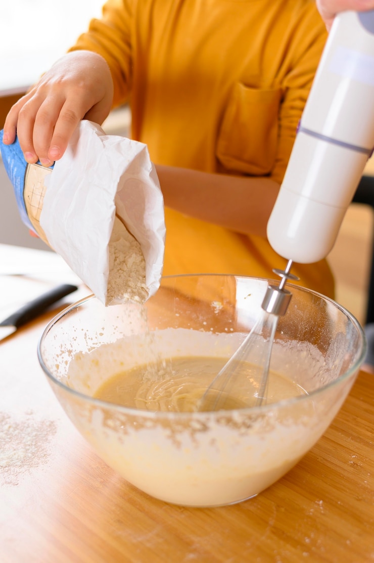 - Муку следует добавлять небольшими порциями к остальным компонентам, постоянно помешивая.