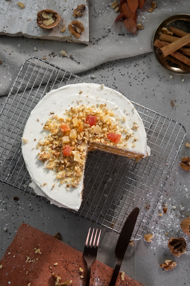 - Верх и бока торта покрываем кремом.
