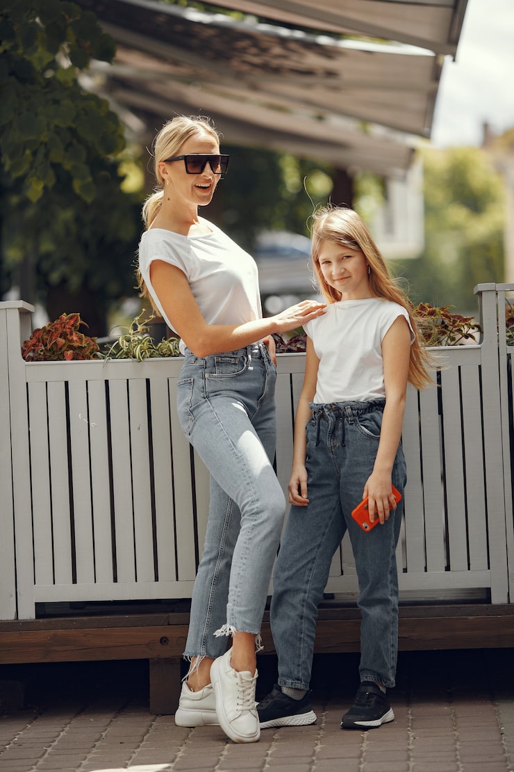 - МОМы. Несмотря на то, что «мамины» джинсы, узнаваемые по своему свободному верху и узкой штанине, не собираются уступать свои позиции, стоит учитывать, что эти модели не так универсальны, как кажется на первый взгляд. Они не рекомендуются женщинам с пышными формами, поскольку могут визуально увеличивать их объем.