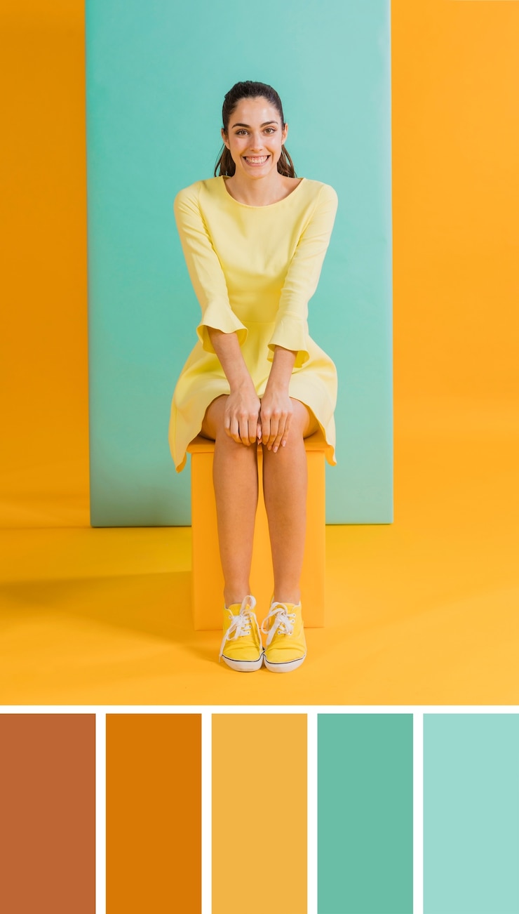 Солнечный свет – это цвет хорошего настроения, нового начала и интересных открытий. Соедините его с коричневыми оттенками для красивого стильного образа. Хорошо смотрится солнечный свет в комбинации с пепельным, серым, синим.