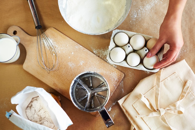 - Над всем этим — яйца, мягкое масло и молоко.