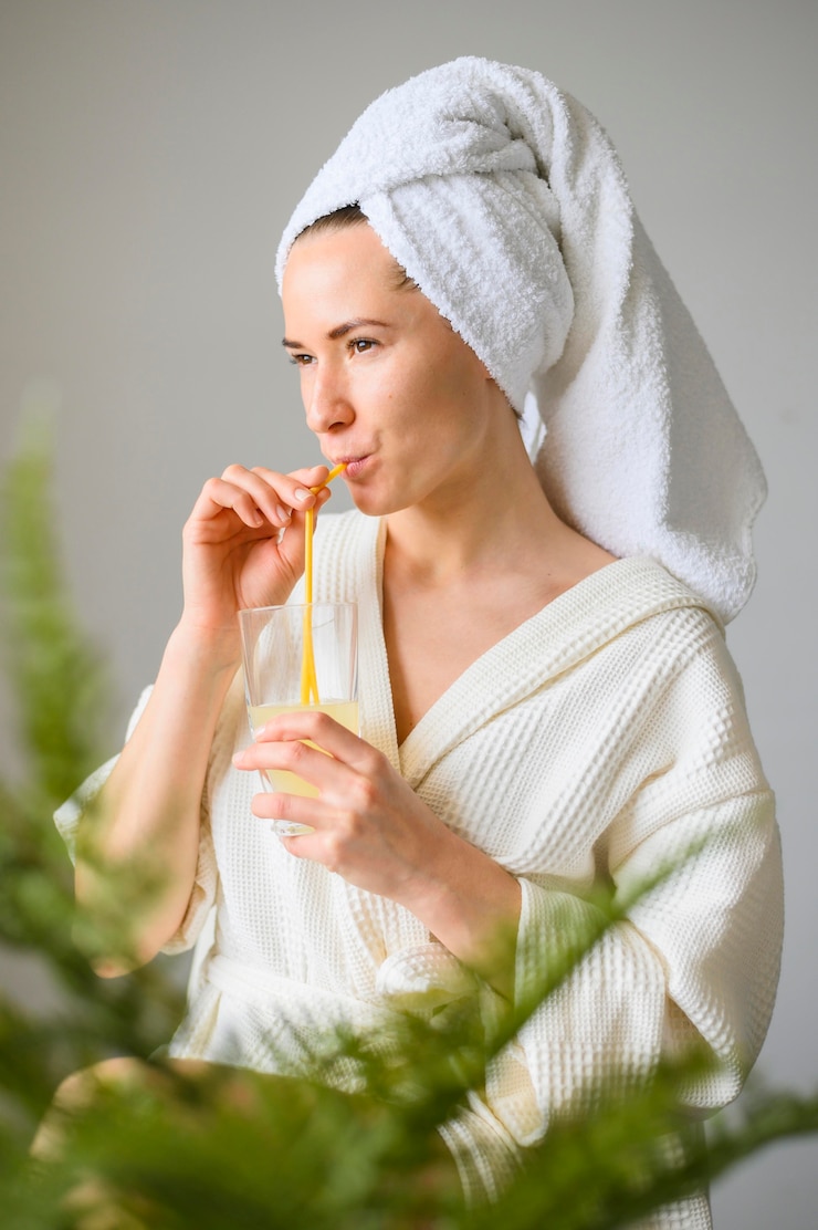 Затем необходимо вымыть голову шампунем, предварительно смешав его с лимонным соком. Это придаст волосам блеск и поможет восстановить поврежденные концы. Дополнительно можно ополоснуть волосы отваром трав, например, мяты, ромашки и липы.