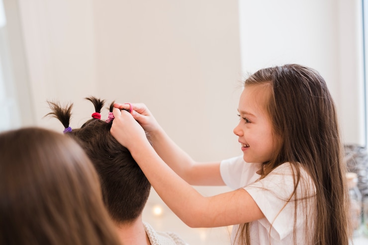 Следуя всем этапам, мамы смогут сами уложить волосы своей дочери: