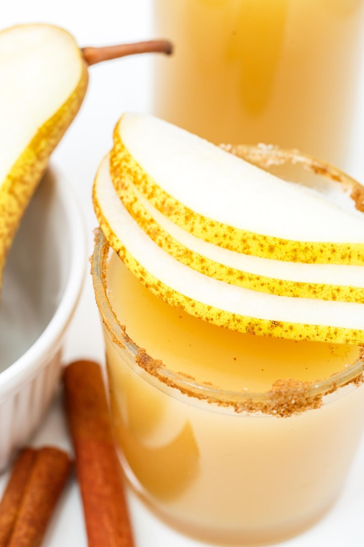 - Для подготовки долек фруктов подготавливаем подкисленную воду, в которую будем опускать их по мере готовности. Это достигается растворением в воде лимонной кислоты в соответствии с указанными пропорциями.