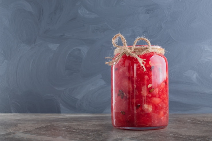 - Влейте горячий маринад в емкость и плотно закройте винтовой крышкой.