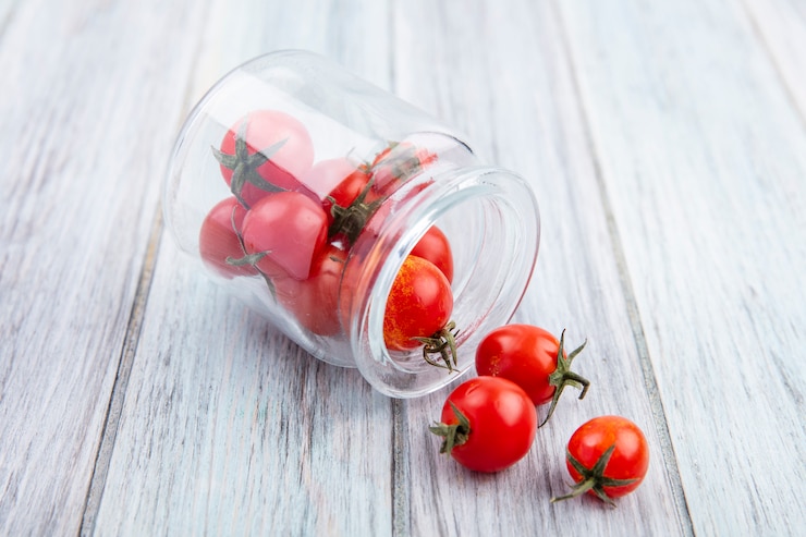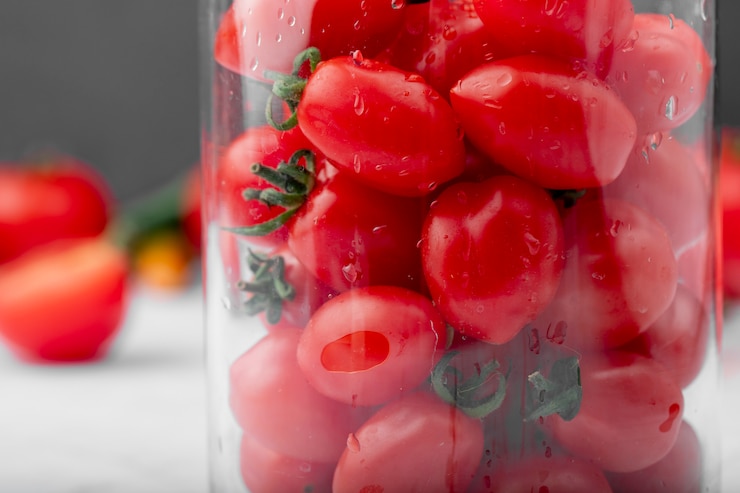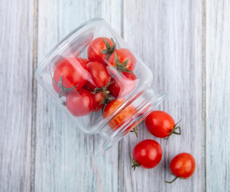 - Помидоры необходимо перебрать. Для консервирования подходят исключительно цельные, неповрежденные плоды. Разместите овощи в продезинфицированные банки.