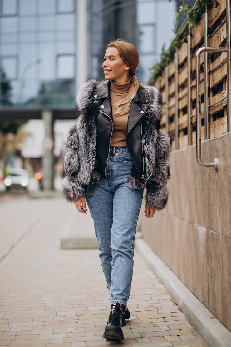 - ботинки на тракторной подошве и свободного кроя короткая куртка;