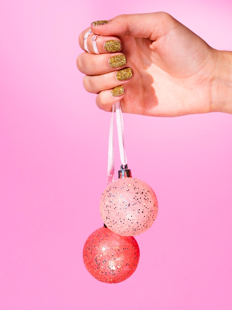 В настоящее время глиттер пользуется большой популярностью во всех возможных формах. Это отличный материал для создания новогоднего дизайна. Независительно от способа нанесения (будь то сухой, рассыпчатый или гелевый глиттер), он обеспечит покрытию бархатистый вид. Это прекрасный выбор для вечернего образа. Глиттер можно наносить на один или все ногти.