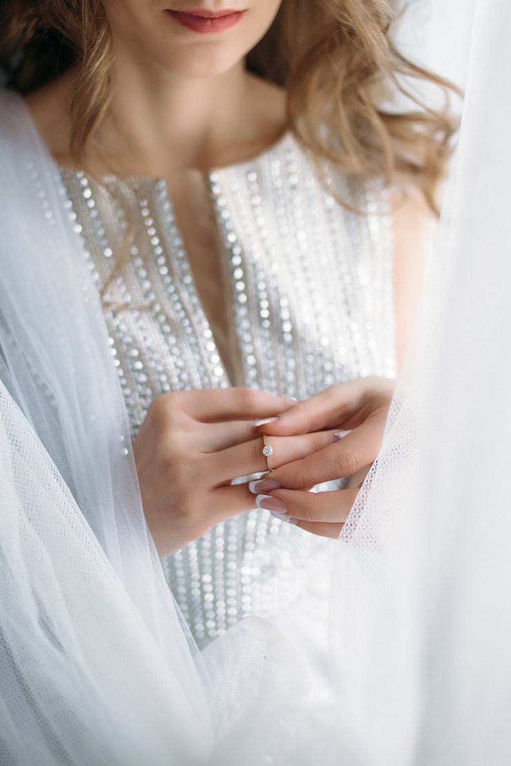 - использование декора, подчеркивающего дизайн свадебного кольца. Например, можно нанести на ногти тонкий узор из сияющих золотых линий;