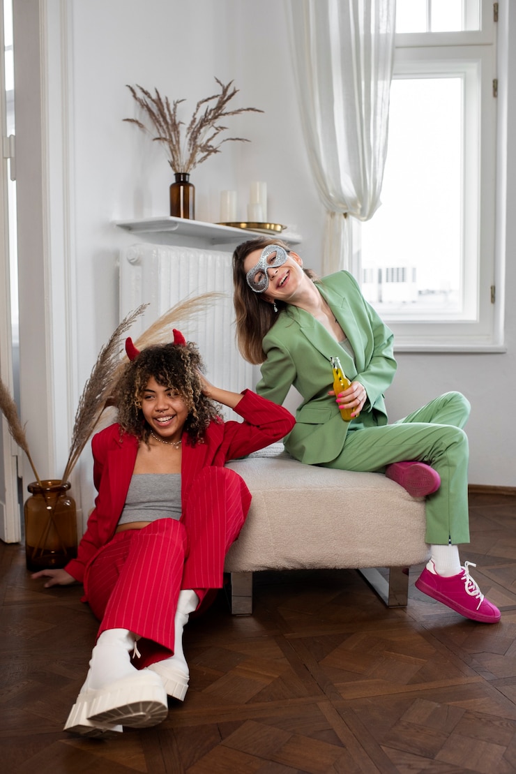 В осенне-зимний период также уместно выбрать вещи зеленого или синего цвета. Весной актуальными будут нежно-розовые и светло-фиолетовые модели, придающие образу свежесть. Яркий и оригинальный образ можно составить, используя желтые или горчичные тона.