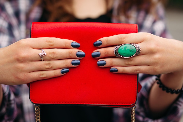 Этот цвет отлично смотрится на фоне матовых поверхностей в насыщенных темных тонах, таких как изумрудный, фиолетовый или алый. Сочетание с лаконичной прямоугольной формой придает маникюру необычный и выразительный вид.