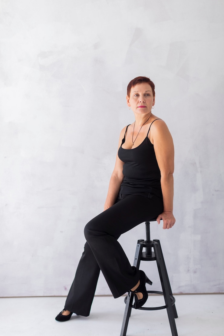 - Многие считают, что женщинам старше пятидесяти лет, особенно с пышными формами, не стоит выбирать брюки-утяжки. Однако это утверждение не соответствует действительности. При грамотном подборе фасона можно скрыть большинство недостатков фигуры. Отдавайте предпочтение моделям с высокой талией и темной расцветке. В сочетании со свободной кофтой, ниспадающей на живот, вы будете выглядеть превосходно.