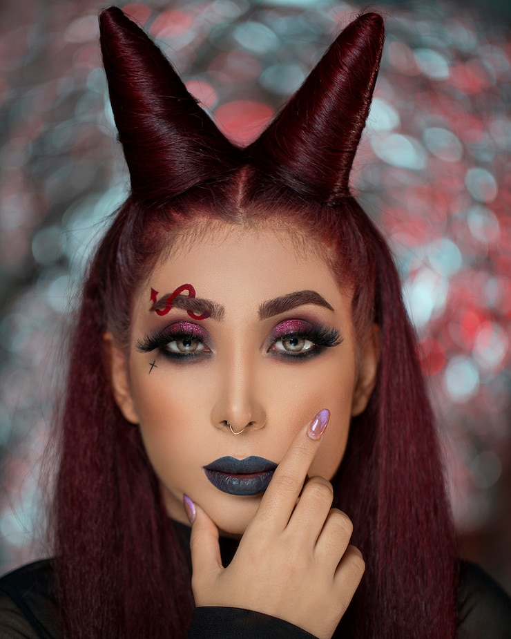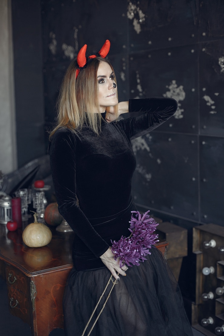 Его часто представляют как олицетворение зла. Дьявол обычно изображается с красным лицом и рогами на лбу. В костюме должны преобладать оттенки красного и черного. Девушки, выбравшие этот образ, выглядят соблазнительно. Воплотить его можно даже с использованием обычных предметов.