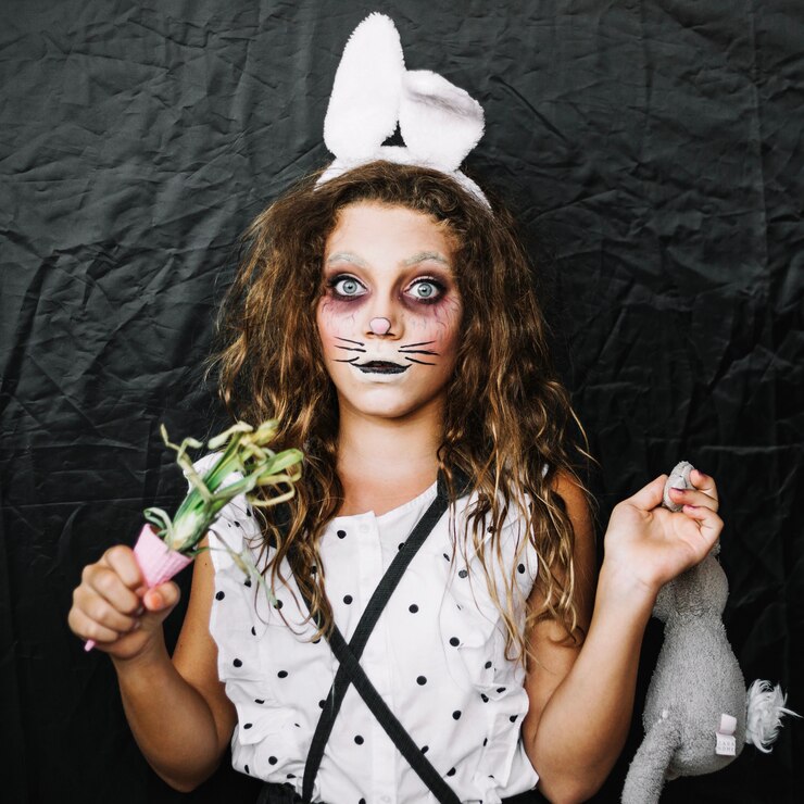 - Помимо костюма, необходимо создать выразительный и пугающий макияж.