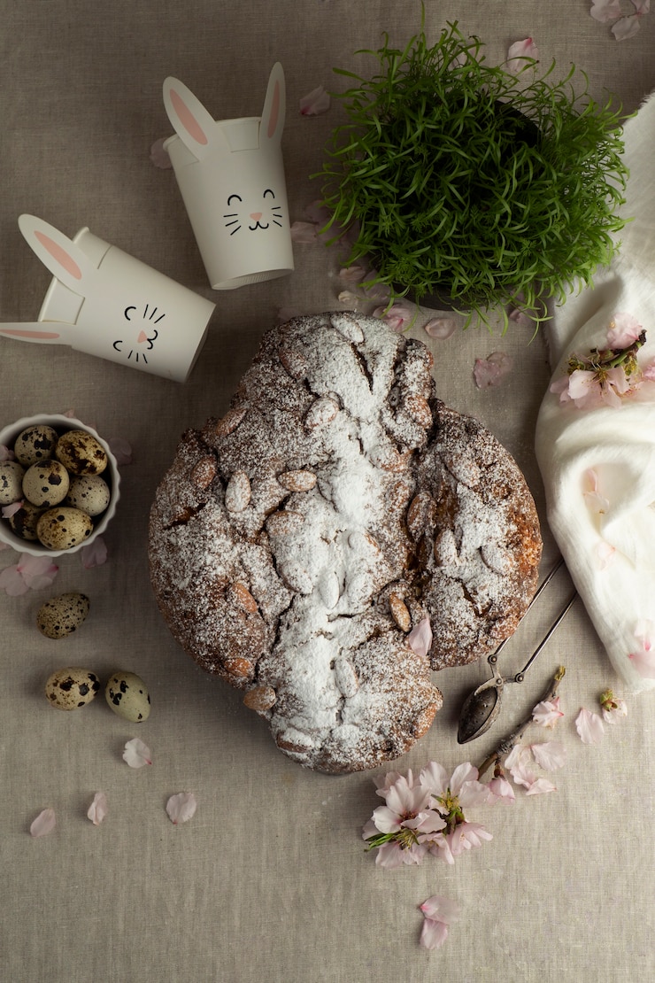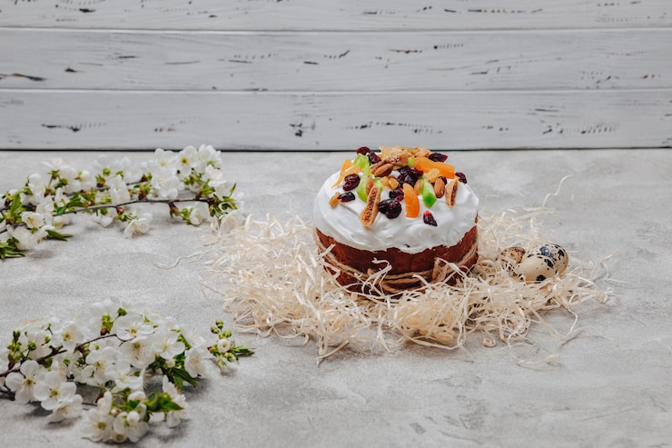 - Готовую паску извлекают из формы. Завершающим этапом является декорирование блюда. Для этого используют посыпки, кокосовую стружку и орехи. Выбор декоративных элементов определяется личными вкусовыми предпочтениями.