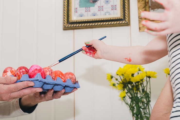 - Слегка прокрашиваем вырезанные детали красной краской при помощи легкого касания губки.